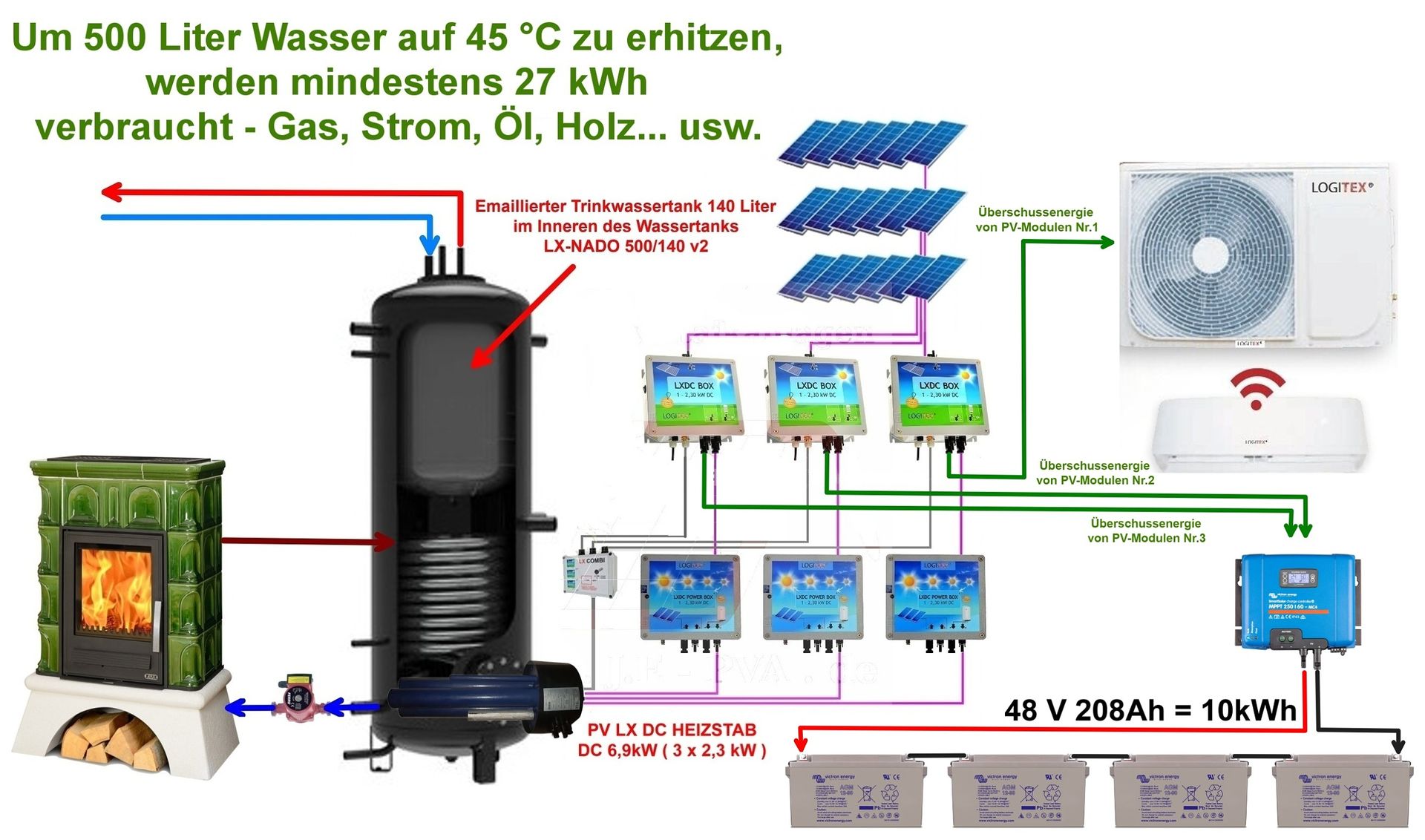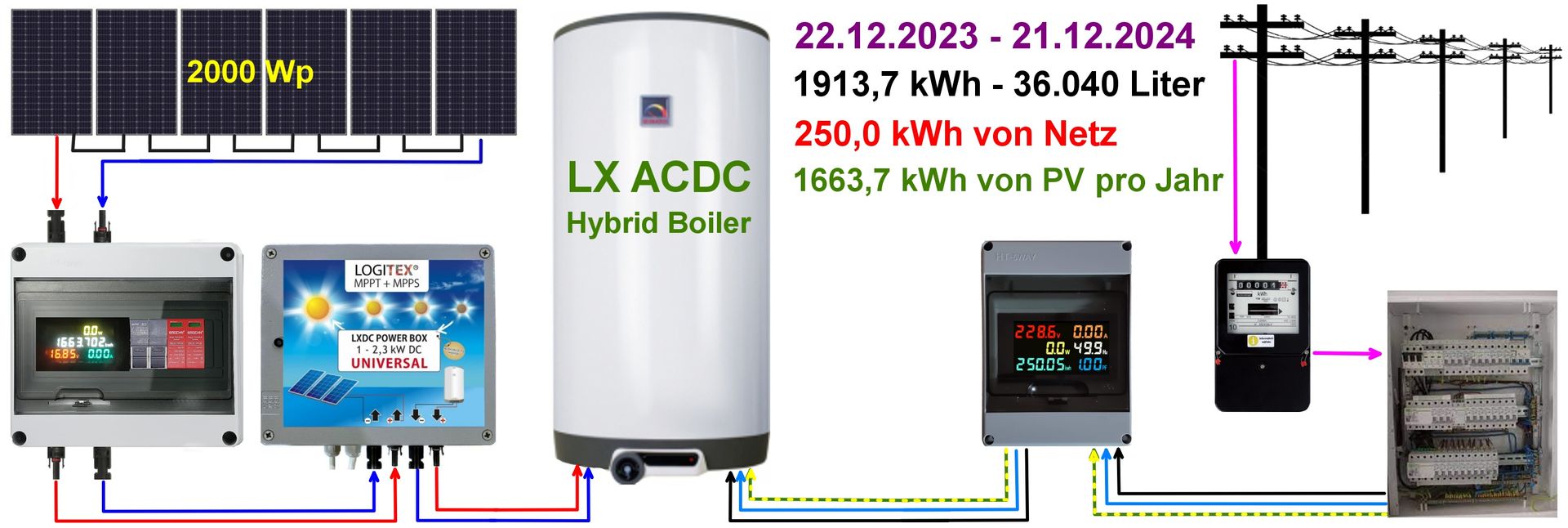Mit 1000Wp erwärmen wir in MITTE - EU bis Ca. 17.000 Liter Wasser pro Jahr mit einem 1000W Heizstab